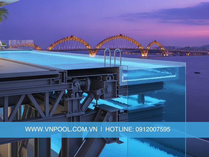 Việc thi công bể bơi tại độ cao tương đương hàng chục tầng đặt ra yêu cầu nghiêm ngặt về: